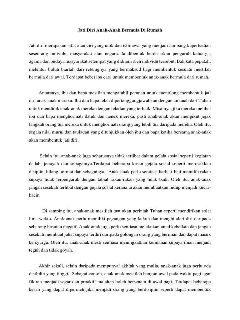 Jati diri bermula dari rumah pdf. Kajian terus menunjukkan kepentingan. Simpan Simpan Karangan Kecemerlangan Anak Anak.
